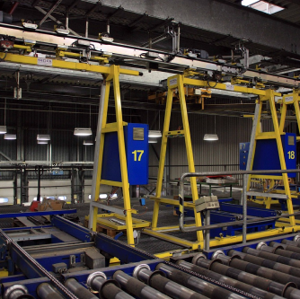"This line protects products by packaging them in advanced ways, ensuring safety during storage and transport. It uses durable materials suitable for metal products."